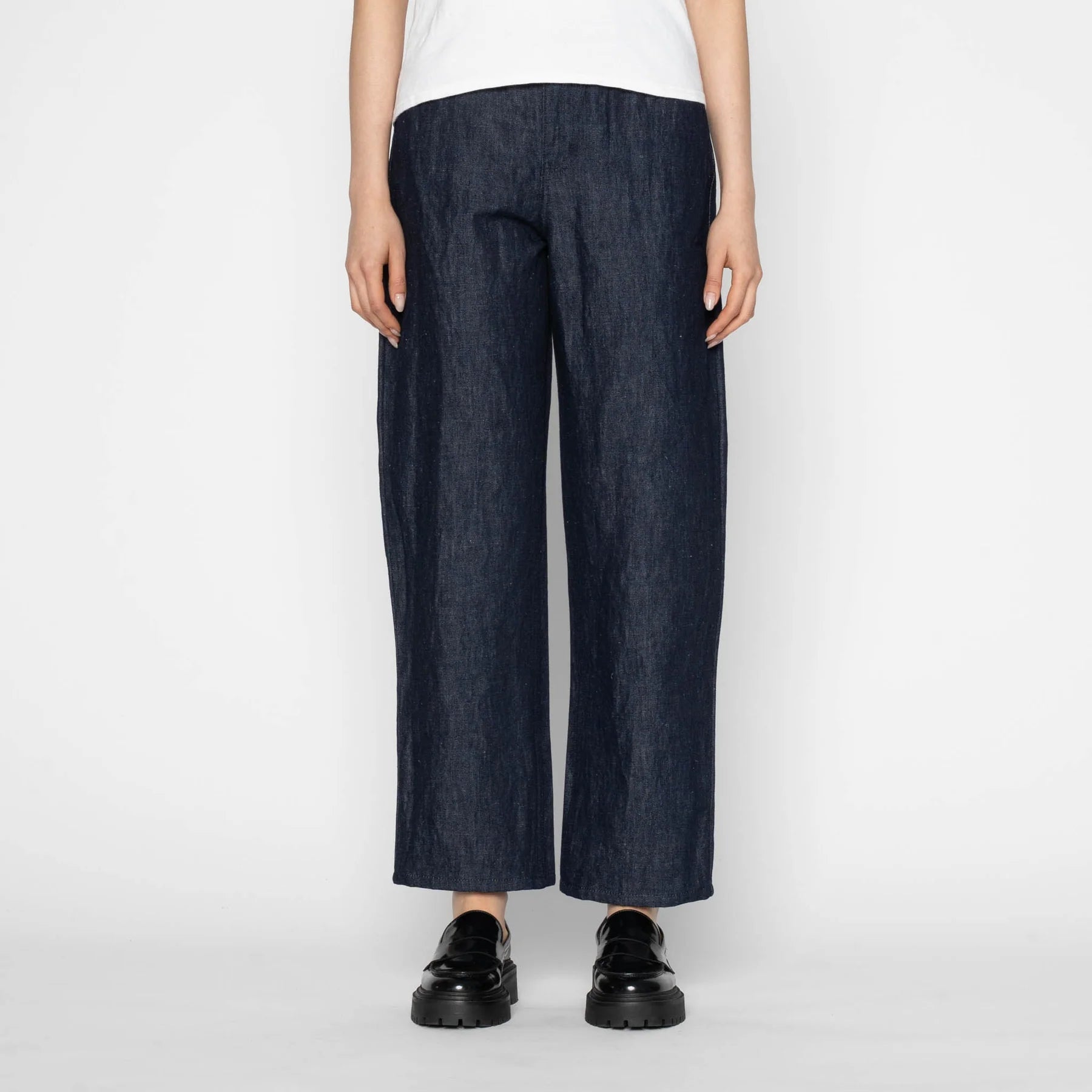 Mid-rise cropped barrel. Slim through the hip with a gently curved leg. Relaxed but polished.