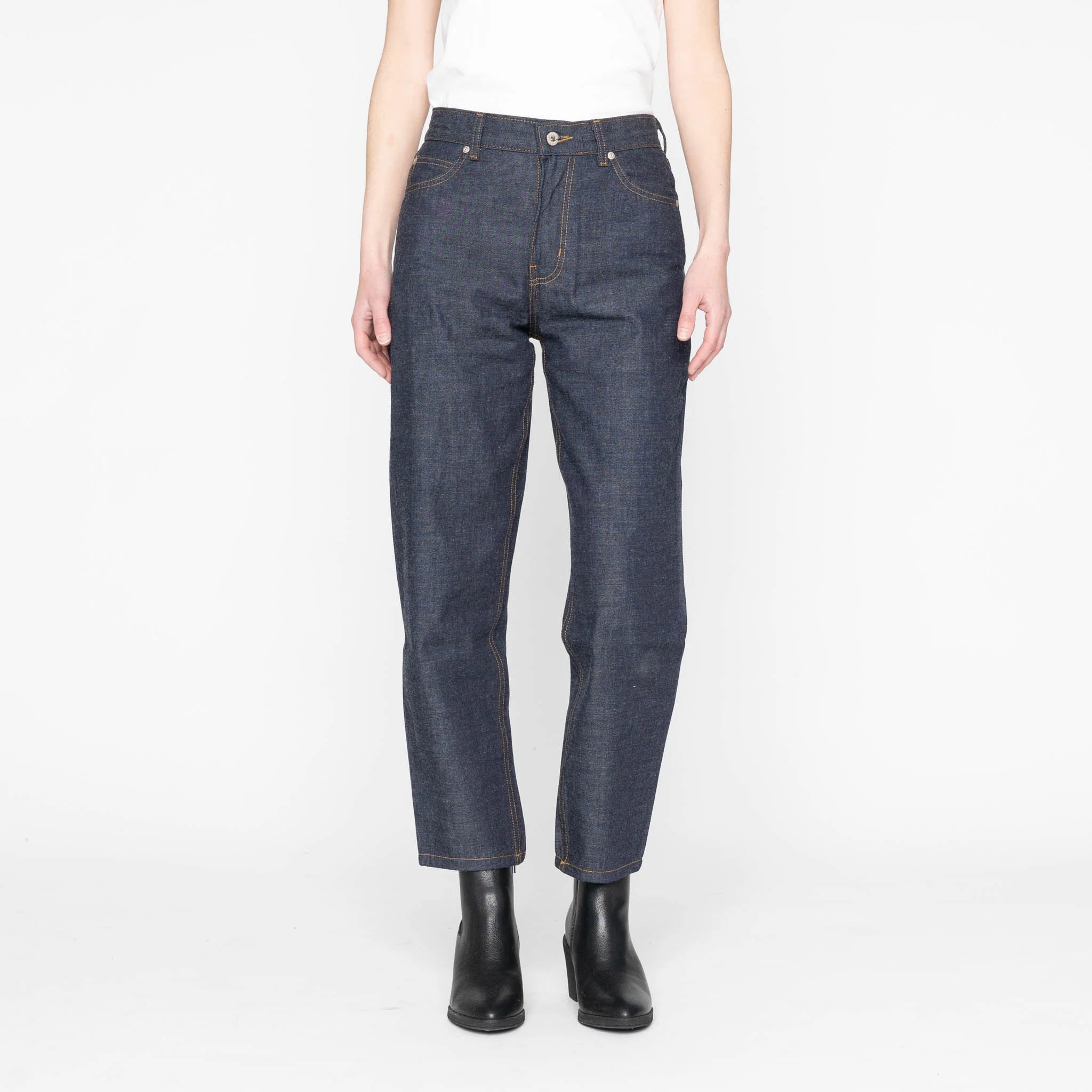 Mid-rise cropped barrel. Slim through the hip with a gently curved leg. Relaxed but polished.