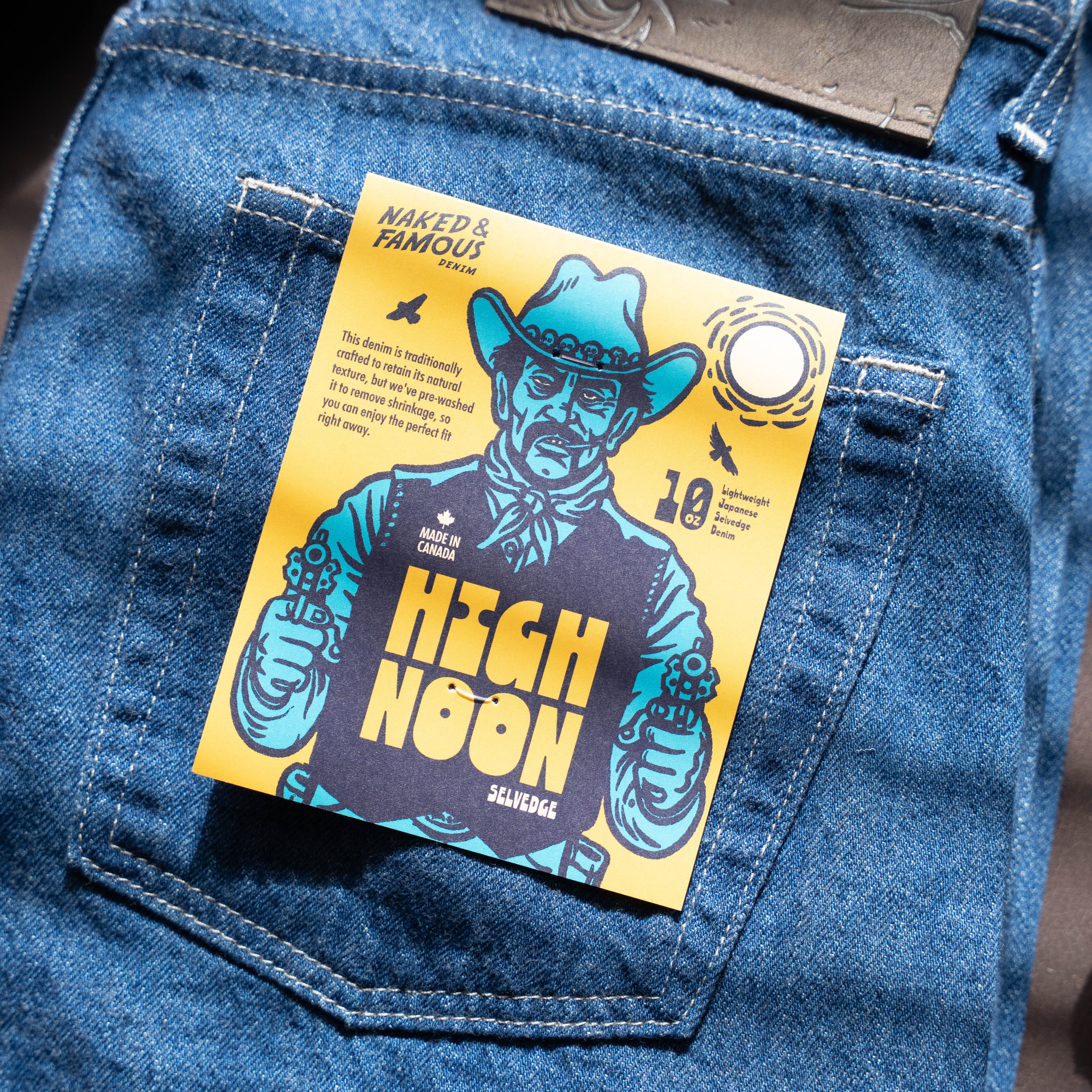 For example, the High Noon Selvedge is unsanforized and then given a single rinse.
