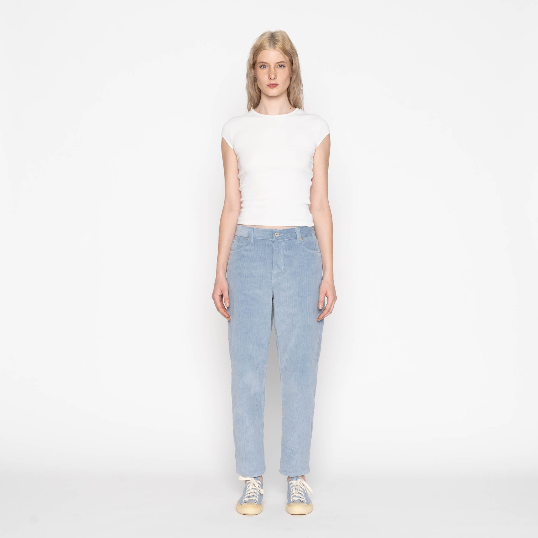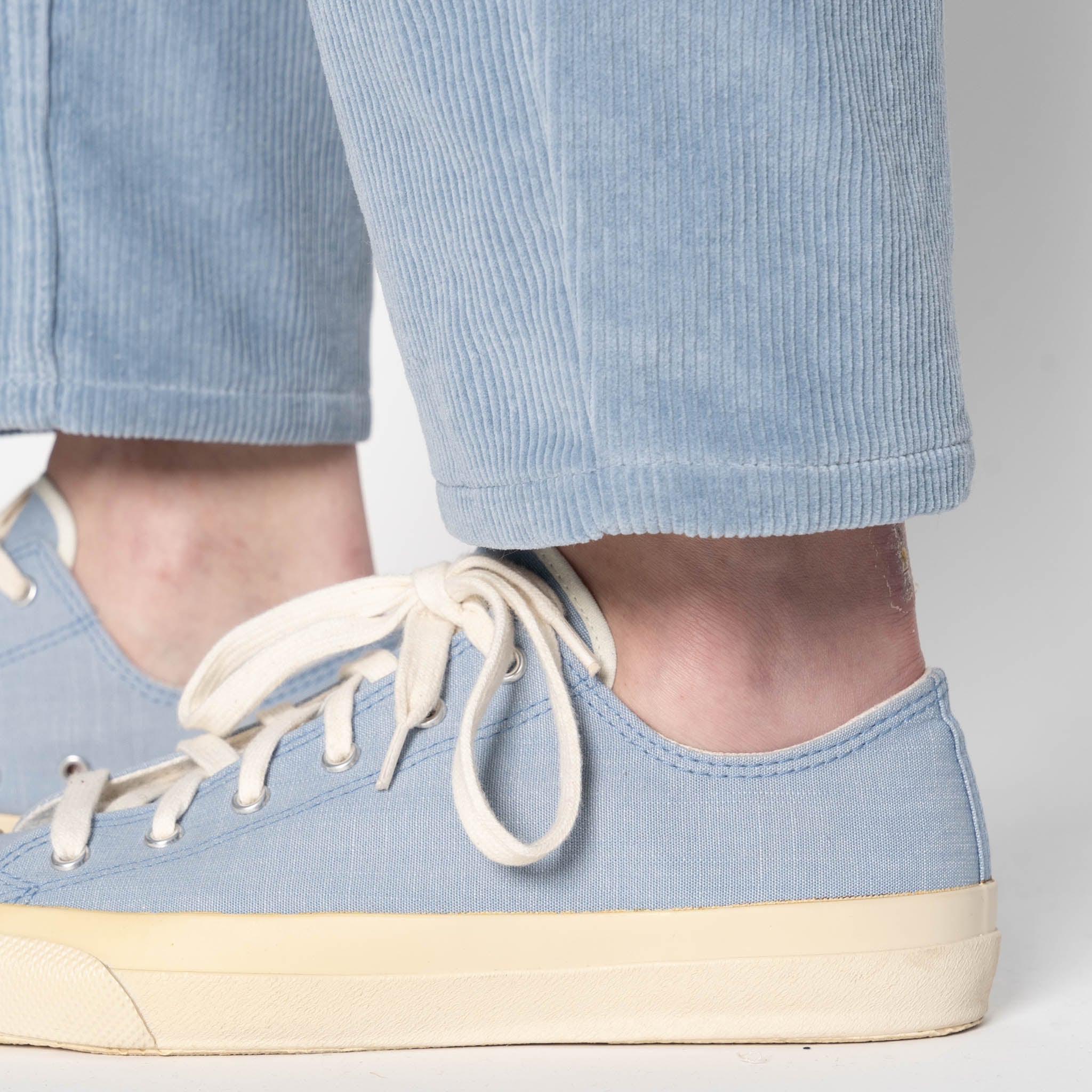 The Organic Faded Corduroy is a 9 wale midweight Japanese corduroy made from 100% organic cotton and fabric-rinsed for enhanced softness and comfort. Dyed with real indigo, it’s designed to fade beautifully over time just like raw denim. Details include tonal stitching, a light brown leather patch, and silver metallic hardware.