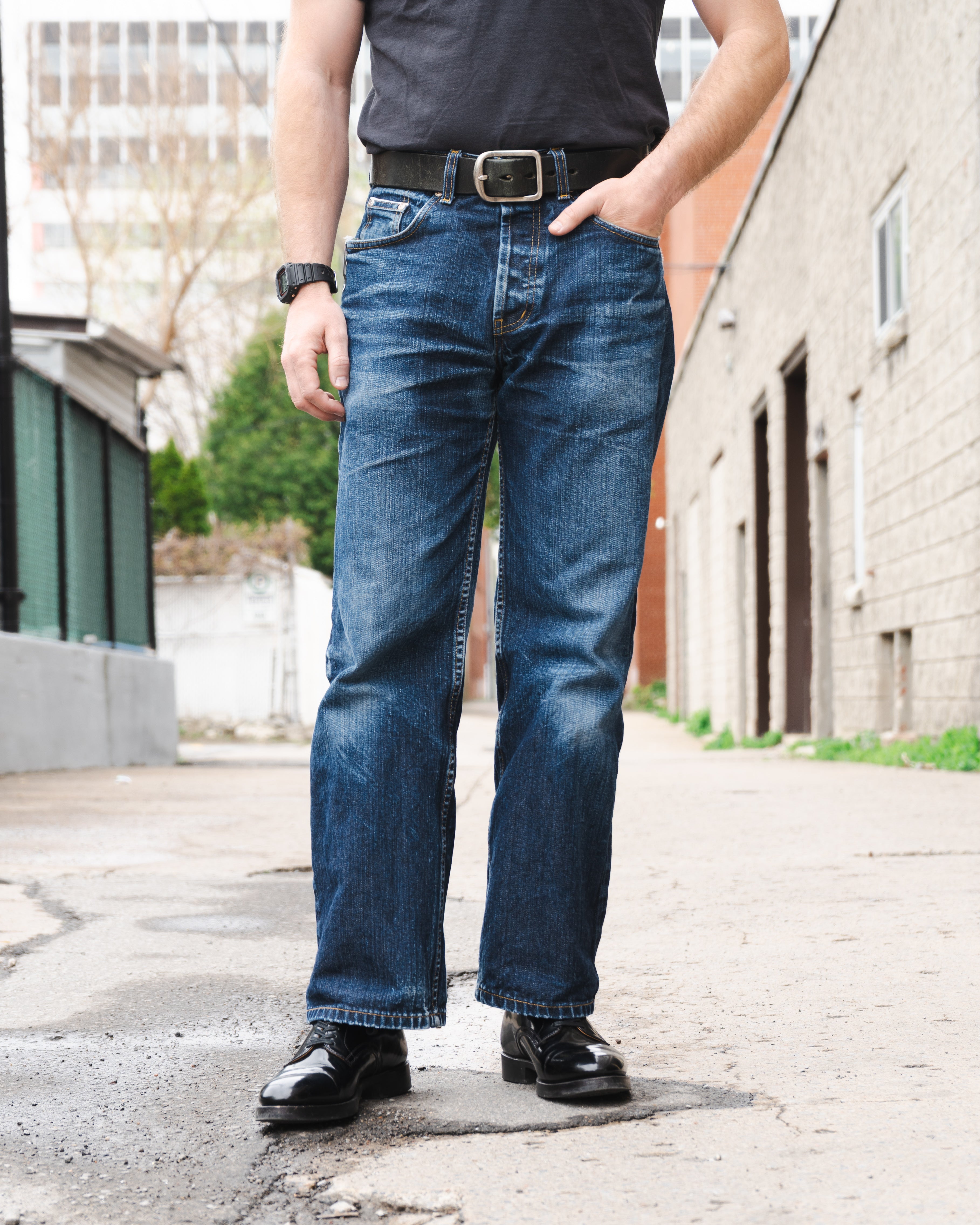 See the dramatic transformation of how the Left Hand Twill can fade over time with extended period of wear and wash. Faded example photos show a pair in the fit "Strong Guy" worn 7 months.