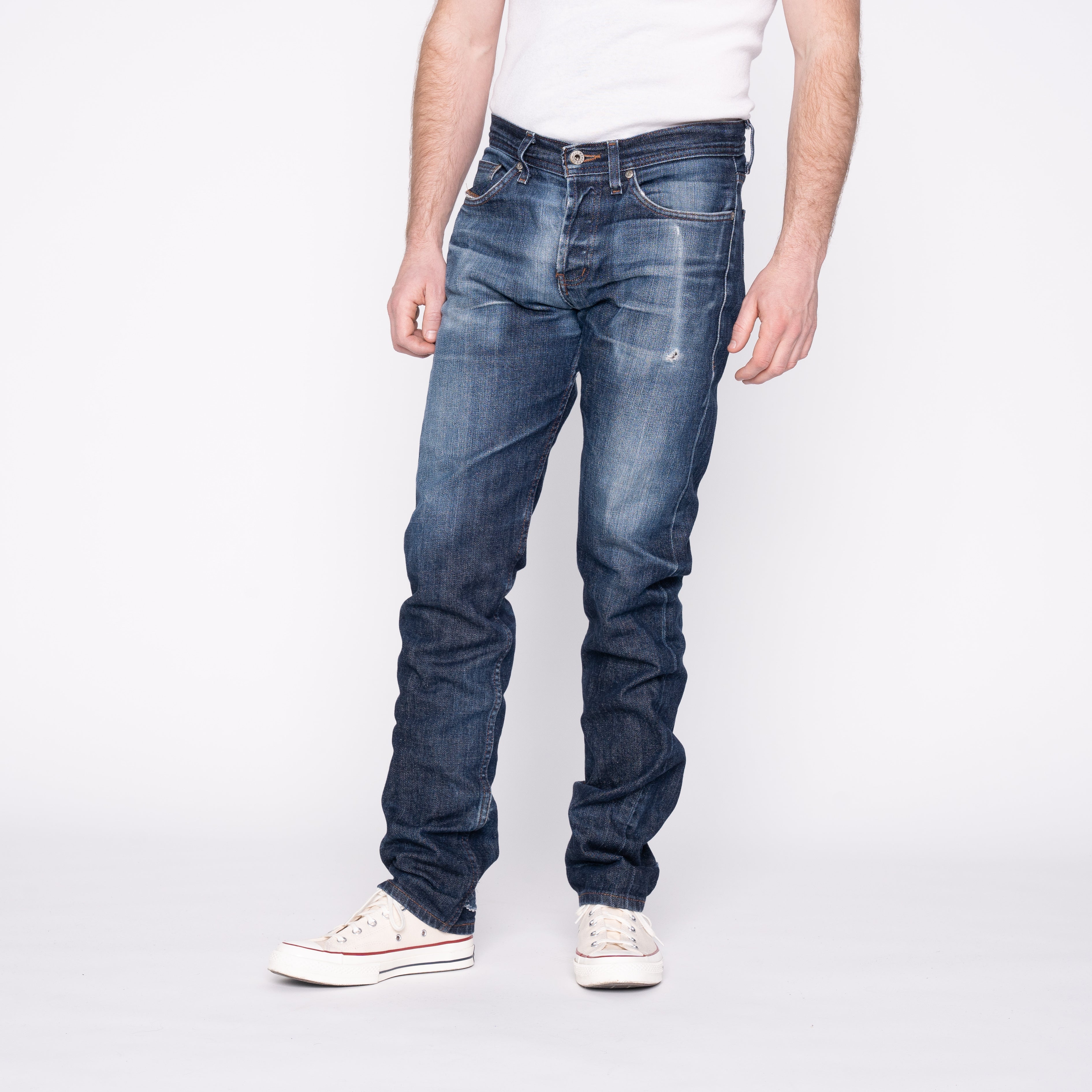 The Stretch Selvedge is one of the most popular core selvedge fabrics in Naked & Famous Denim's lineup. Woven on vintage shuttle looms in a right hand twill construction, this 12.5oz Japanese selvedge denim combines the comfort of stretch denim with the beauty and fading potential of raw denim. The 2% elastane eliminates the break-in period and gives you a continual level of comfort that you can't experience in 100% cotton jeans. Other details include contrast stitching, full grain English tan leather patch, red selvedge ID, silver metallic buttons and rivets. The Weird Guy is a regular tapered fit; medium rise, standard thigh and slight taper from the knee to hem.