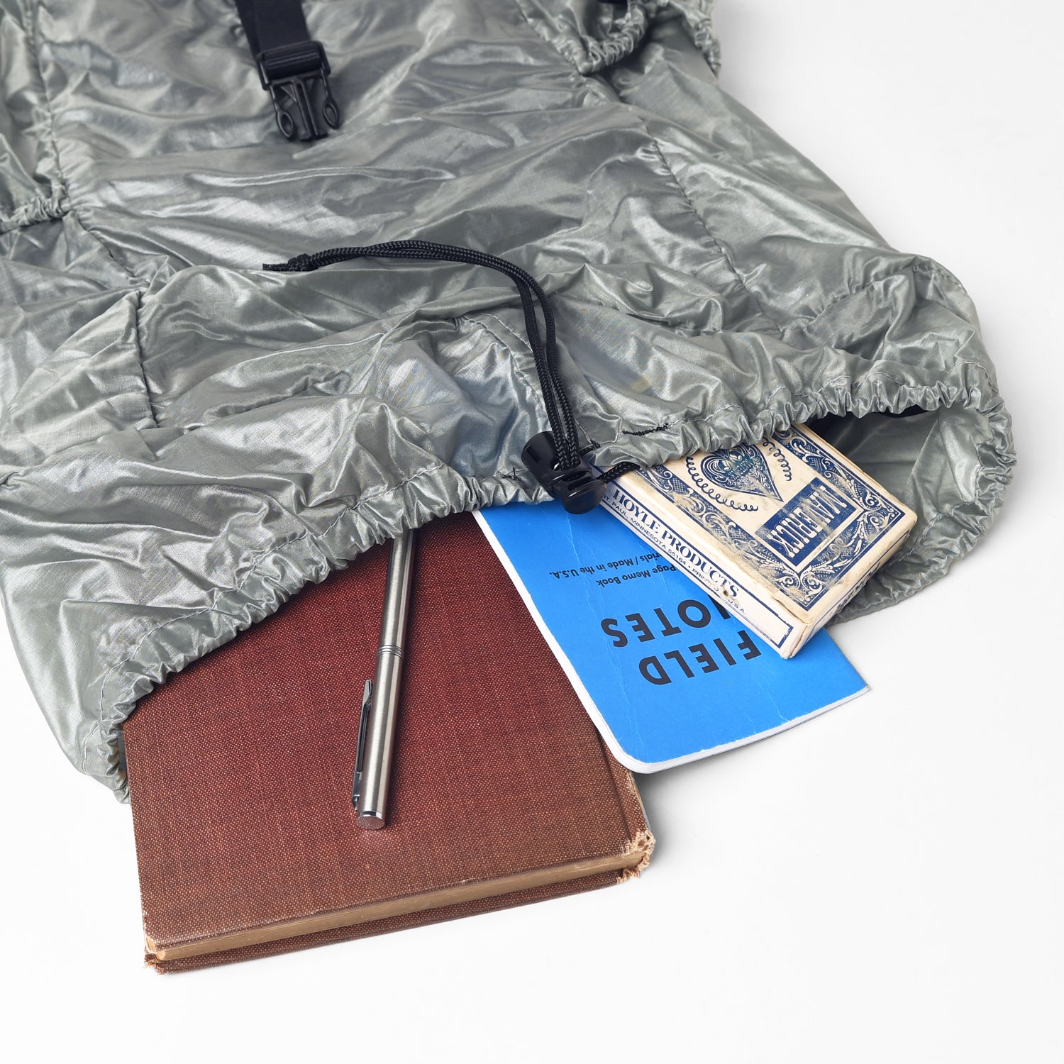 Epperson Mountaineering's Packable Parachute Bag is constructed with a Windproof Nylon Ripstop along with a military-grade tubular nylon webbing. In addition, the fabric is extremely light, yet resists tears with great toughness due to its construction. Drawstring closure and climbing-spec daisy chained webbing (a chain of small loops reinforced with bar tacks) along the face of the bag increase utility and round out the unique climbing-meets-military aesthetic.