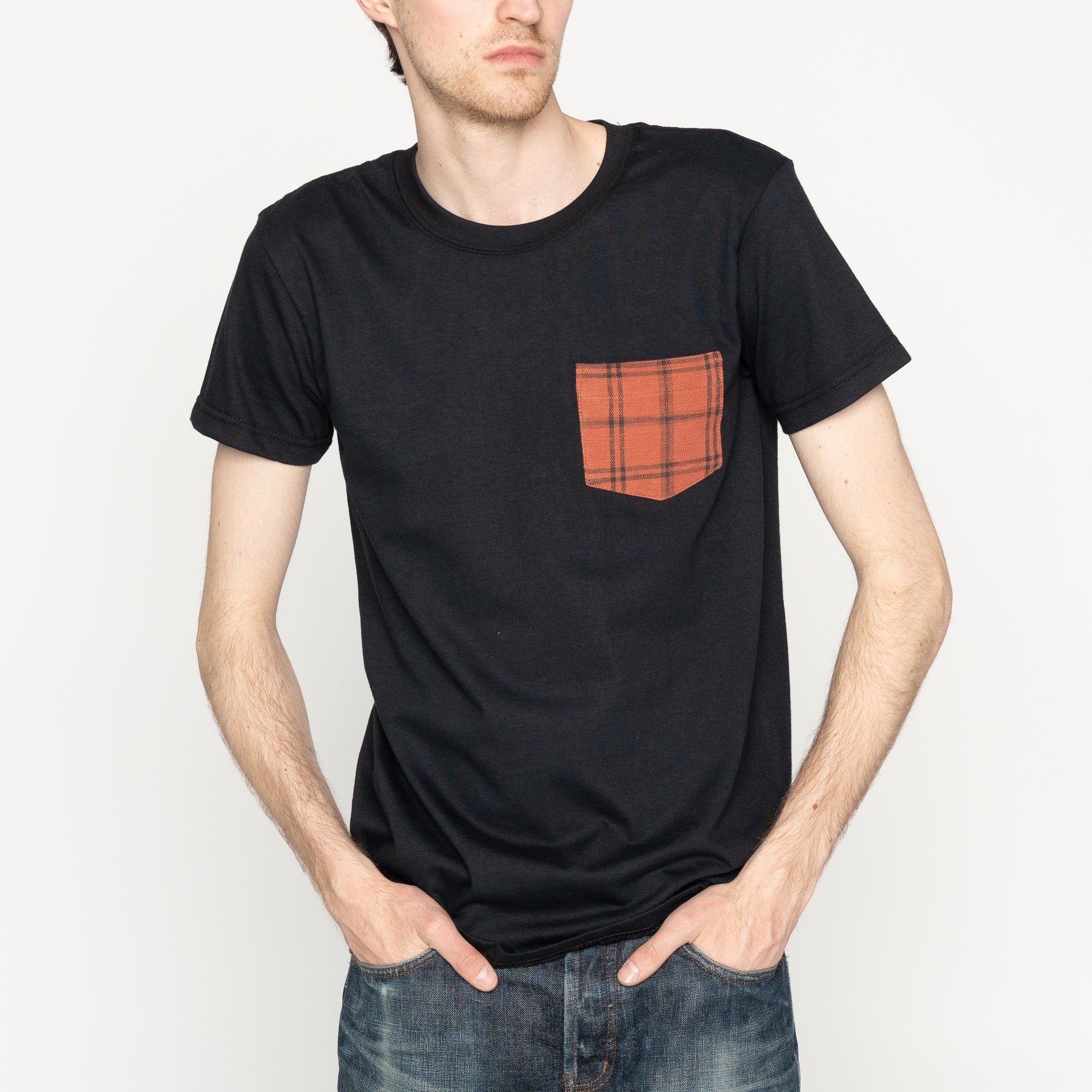 Pocket Tee - Black - Big Slub Vintage Flannel - Red