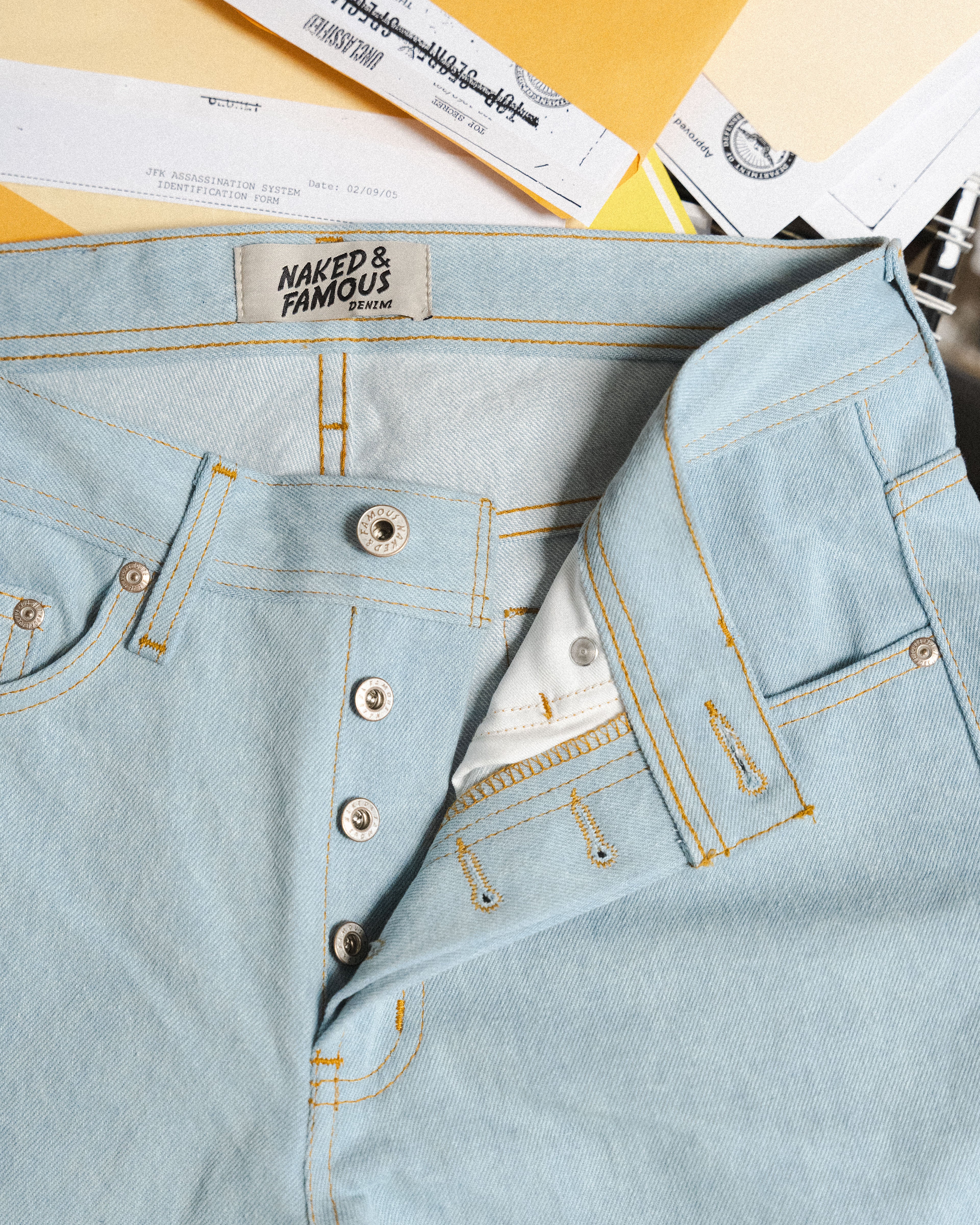 The Solid Black Selvedge is a 13oz black Japanese selvedge denim. Both the warp and weft are sulfur-dyed black to create a pitch-black denim. The denim is woven on vintage shuttle looms in a right hand twill construction with a classic red line selvedge ID. Cut, sewn, built in Canada with black stitching, a full-grain black leather patch, and black metal buttons and rivets.